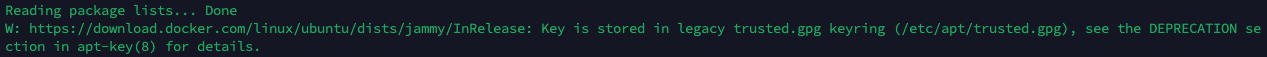 $ curl -fsSL https://download.docker.com/linux/ubuntu/gpg | sudo gpg --dearmor -o /etc/apt/trusted.gpg.d/docker.gpg