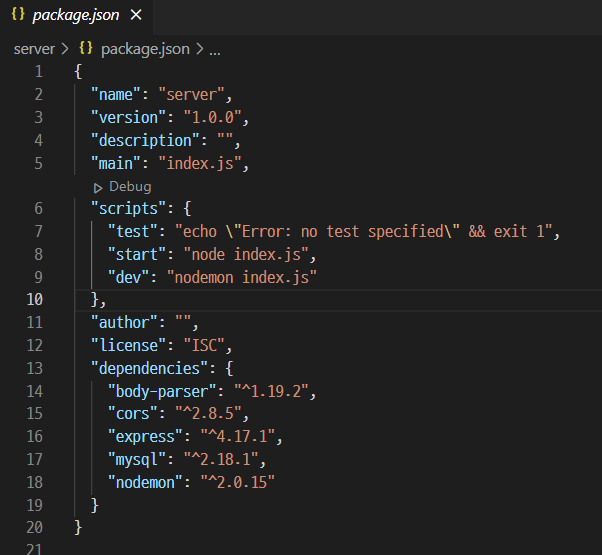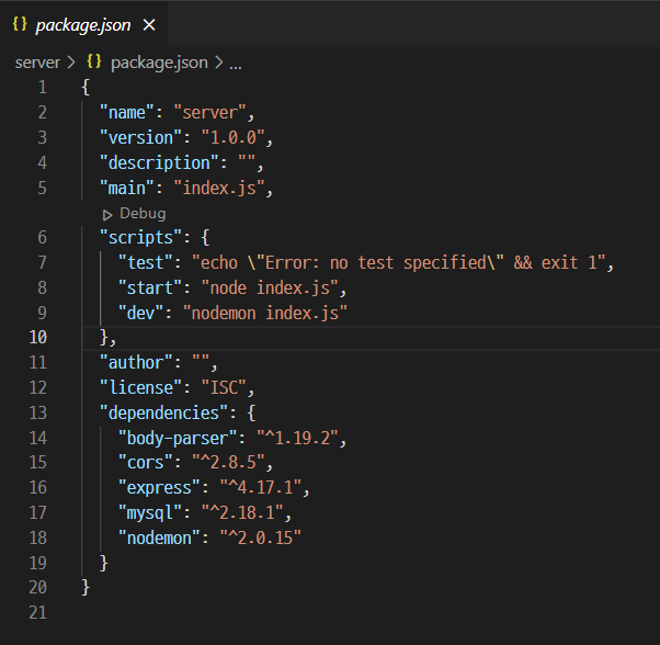 server 는 React 프로젝트와 db 를 연동해주는 기능을 할것이다.