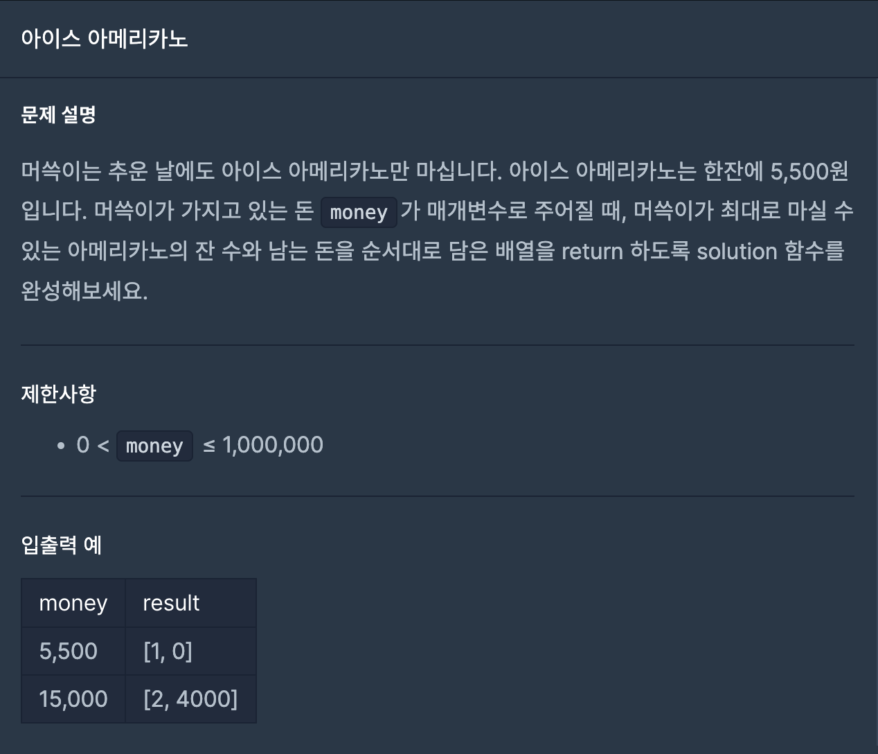 이 문제를 처음 딱 봤을때 들었던 생각은 int 배열에 목과 나머지를 계산해서 때려 넣자! 였다.