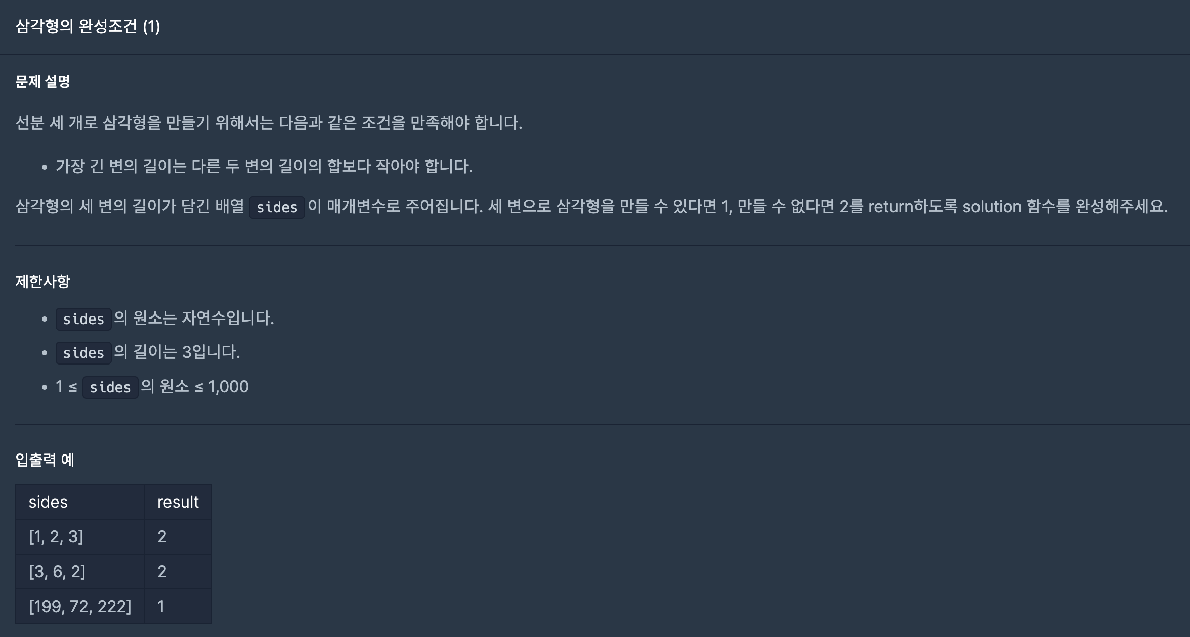 사실 간단하게 IntStream 을 사용 안하고 sort 된 배열에서 인덱스 0, 1 번 값의 합을 2번 값에 비교하여 닶을 도출할 수 있는 문제였다.