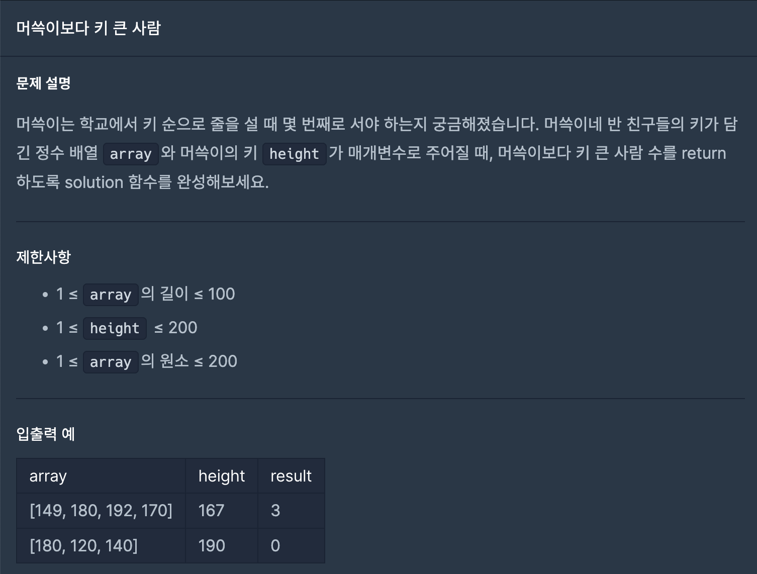 딱 봐도 height 보다 높은 애들만 filter 처리하여 그 수만 계산해주면 될것 같다.