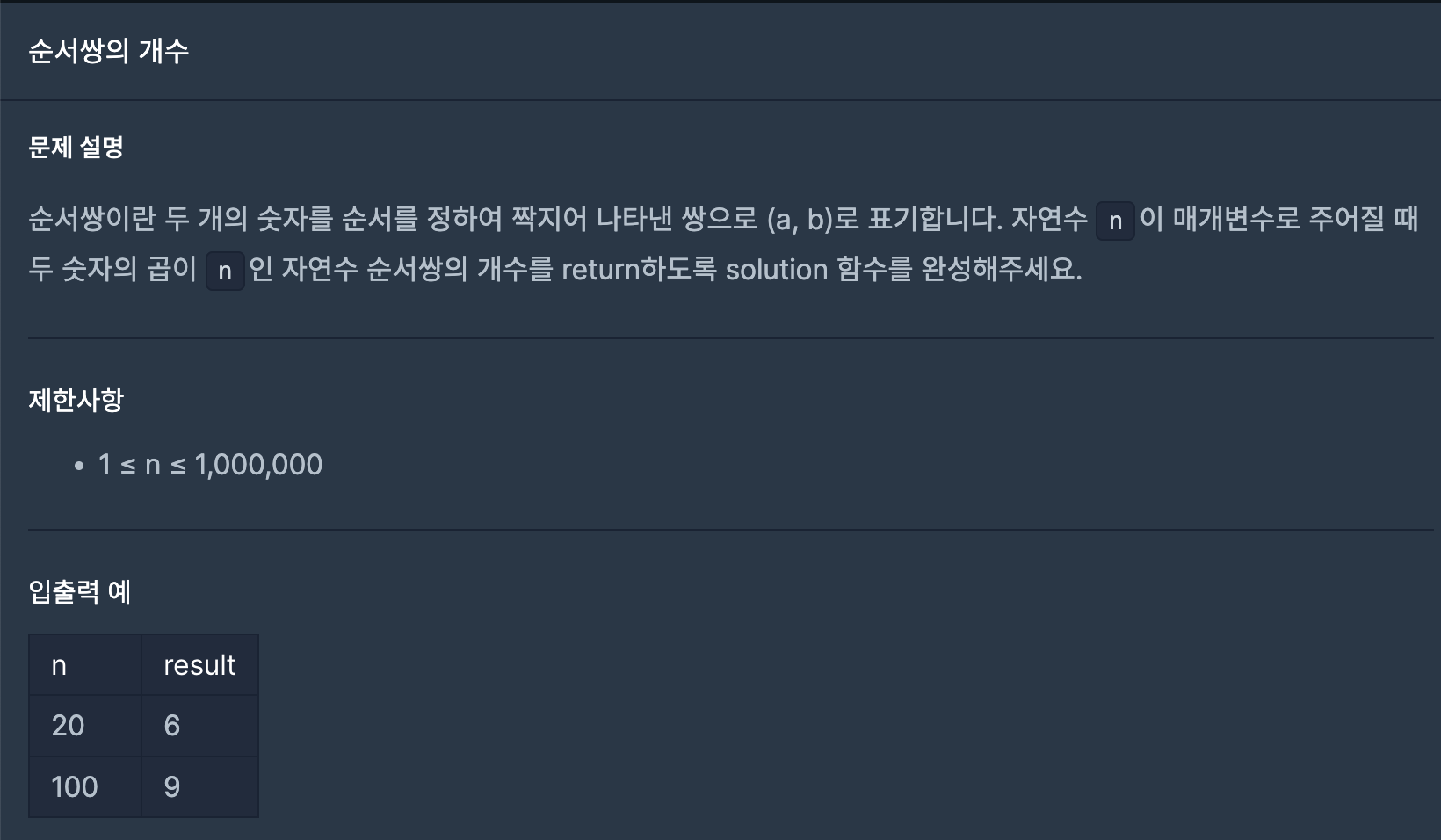 바로 주어진 숫자 n 에 순서쌍의 첫번째 숫자를 나누면 나머지가 0이라는 것이다.