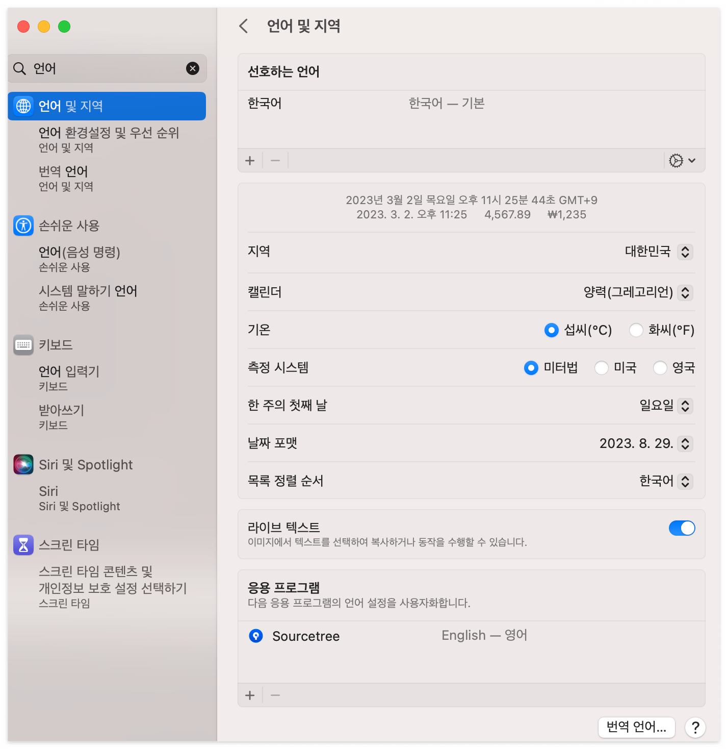 그래서 환경 설정에서 sourceTree 의 사용 언어를 영어로 바꿔줘야 한다.