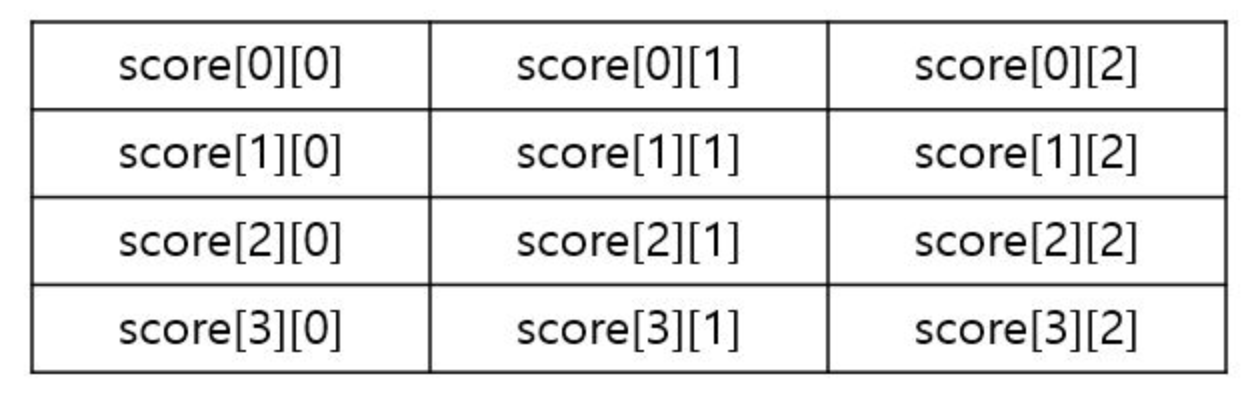 1차원 배열은 1차원적인 접근이라면 2차원 배열은 선 하나가 더 늘어난 2차원적인 접근이 필요로 하다.