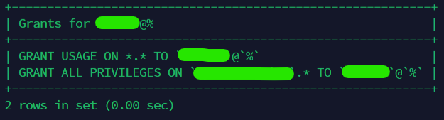 * 하지만 <DB 이름>.* 의 뜻은 특정 DB 내 모든 Tables 에 모든 권한을 부여하겠다는 뜻이다.