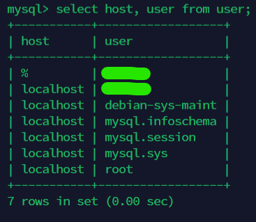 SELECT host, user FROM user;