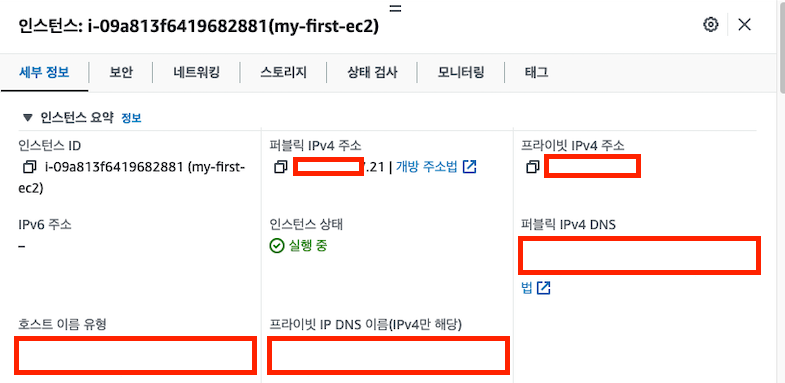 "2-10. 인스턴스 재시작하기" 에서 처럼 인스턴스를 재시작해보고, 다시 인스턴스 세부정보를 확인해보겠습니다.