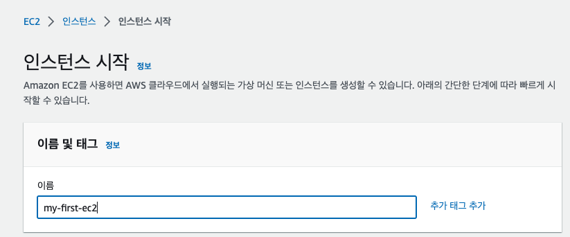 단, 추후에 EC2를 여러 개 사용하는 경우가 생긴다면 각 EC2의 역할을 나타낼 수 있는 이름으로 잘 설정하시는 것을 추천합니다.