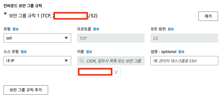 ssh 에 대한 보안그룹 설정 시에는 주의사항이 있습니다.