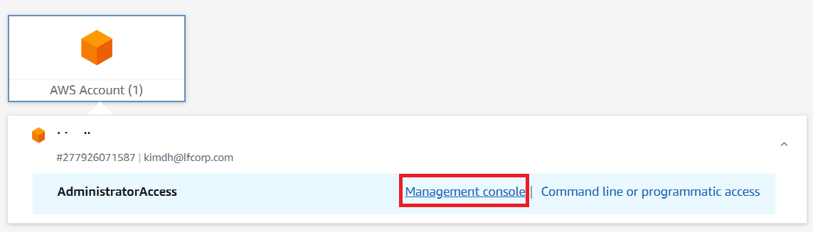 - Aws account가 생겼고, 이를 클릭하면 관리자 IAM 계정으로 콘솔에 접근 할 수 있다.